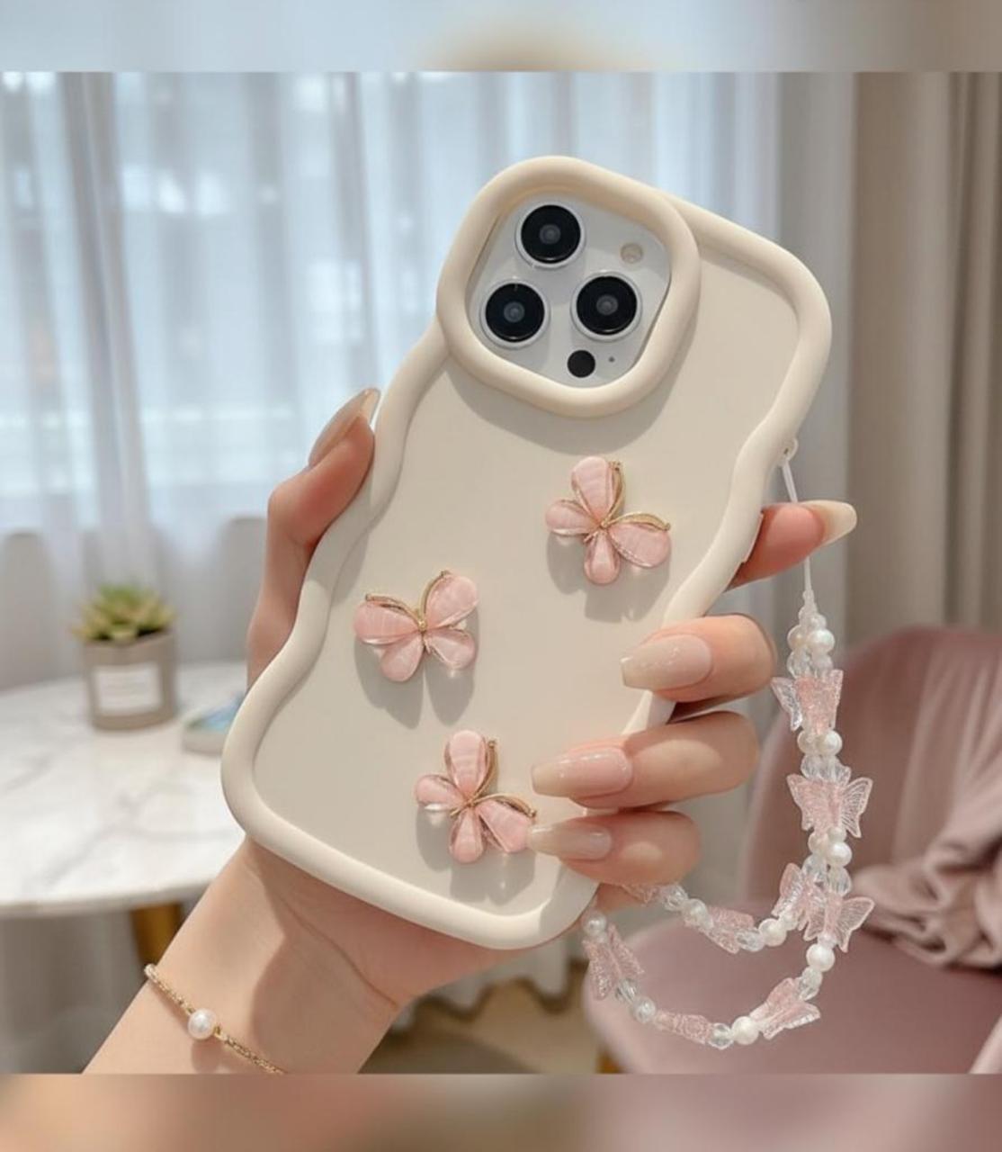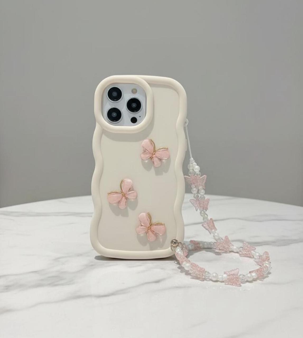 Funda de Teléfono degradada con Mariposas de Cristal y Pulsera de Perlas.