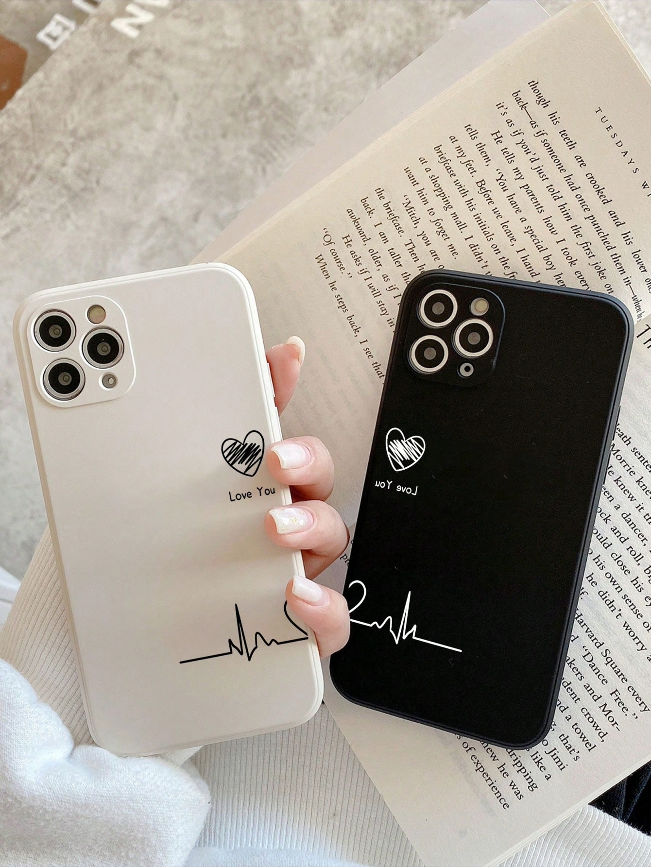 Juego de 2 Fundas de Teléfono TPU en Blanco y Negro para Parejas